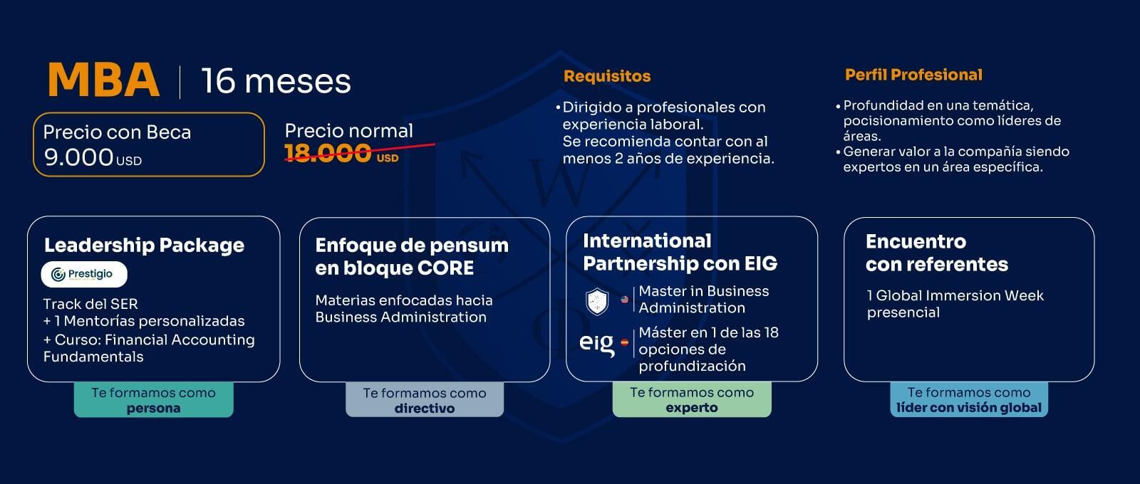 - Para el programa de MBA Dual Degree y MBA el candidato debe demostrar mínimo 2 años de experiencia laboral.